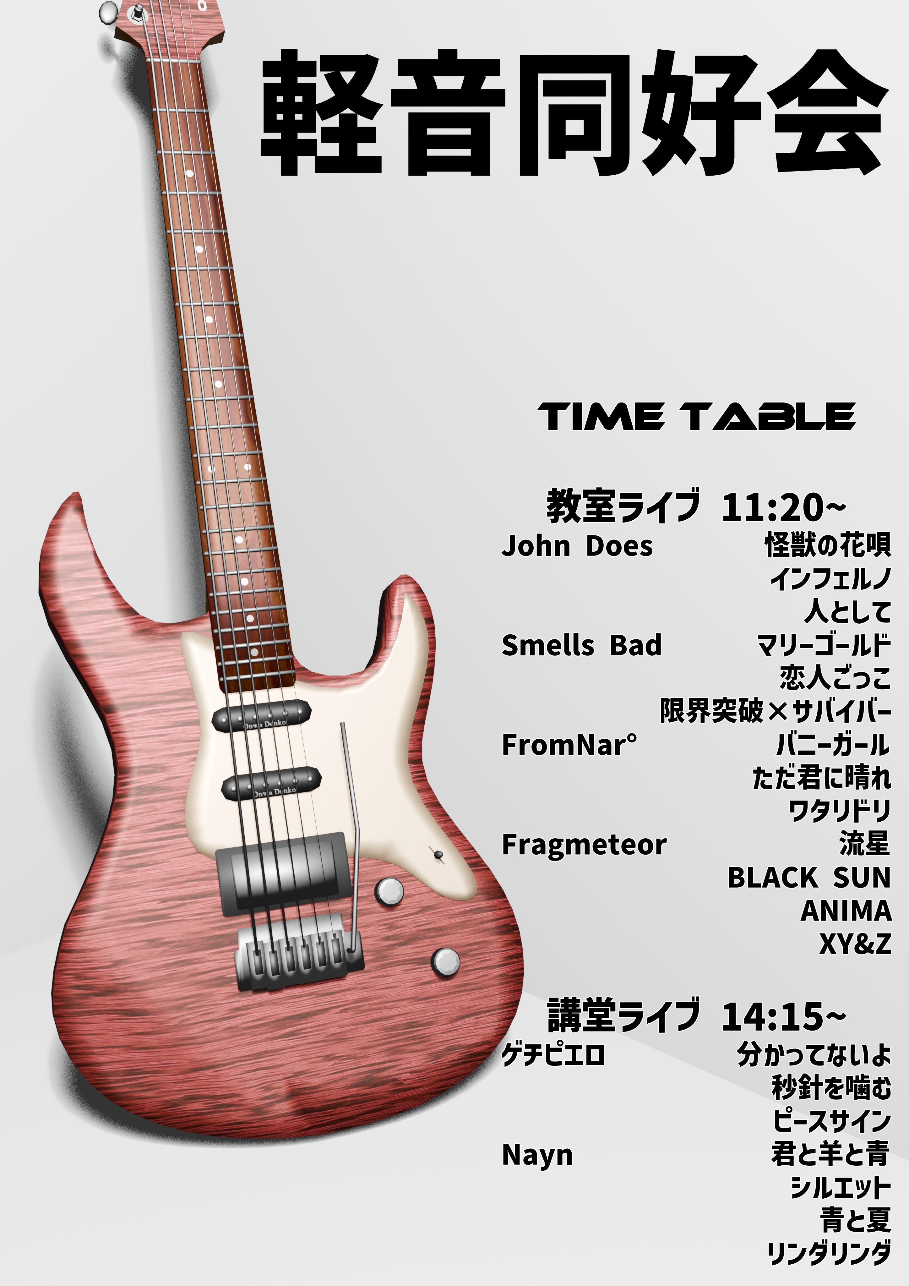 6バンドが演奏します。史上初の講堂ライブ盛り上げます!